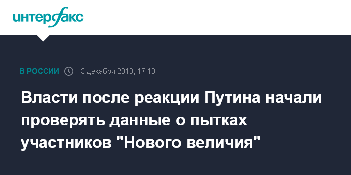 Власти после реакции Путина начали проверять данные о пытках участников "Нового величия"