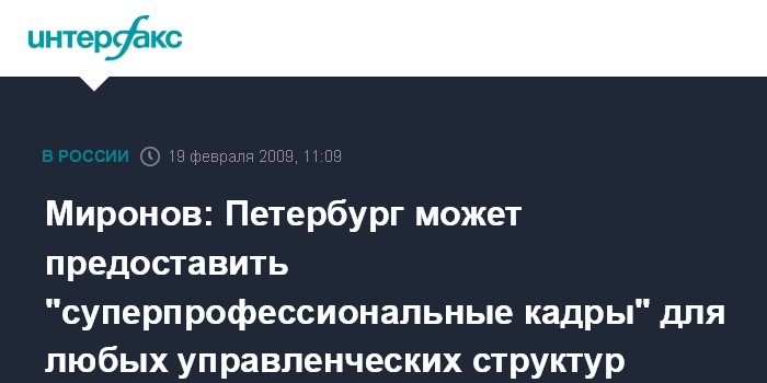 Миронов: Петербург может предоставить "суперпрофессиональные кадры" для любых управленческих структур