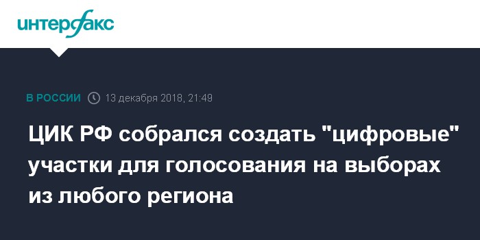 Москва. 13 декабря. INTERFAX.RU - Центризбирком России выбирает модель так называемого "цифрового избирательного участка", который позволил бы избирателям голосовать не только на федеральных, но и на региональных выборах, находясь вне своего субъекта Федерации.