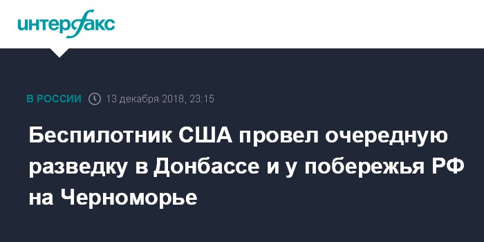Москва. 13 декабря. INTERFAX.RU - Стратегический беспилотный летательный аппарат ВВС США RQ-4B Global Hawk в четверг провел многочасовые разведывательные полеты вдоль линии разграничения в Донбассе, а также у побережья Крыма и Кубани, следует из мониторинговых данных западных авиационных ресурсов.