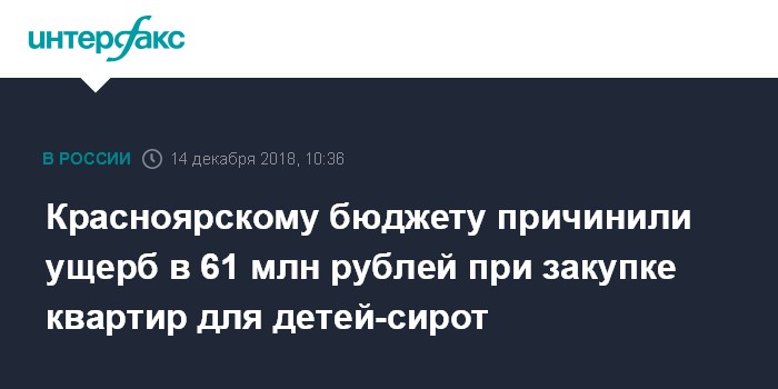 Красноярскому бюджету причинили ущерб в 61 млн рублей при закупке квартир для детей-сирот