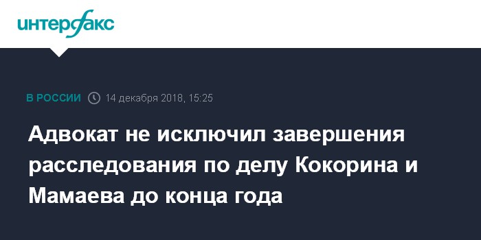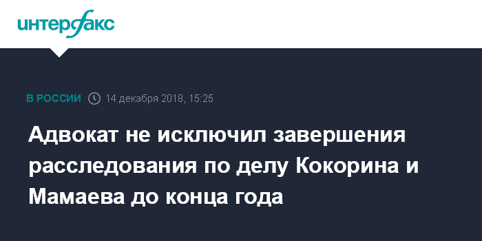 Москва. 14 декабря. INTERFAX.RU - Расследование уголовного дела о хулиганстве с участием полузащитника "Краснодара" Павла Мамаева и нападающего "Зенита" Александра Кокорина может завершиться до конца года.