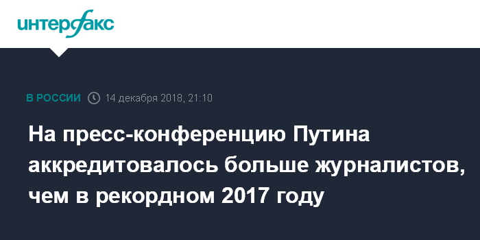 На пресс-конференцию Путина аккредитовалось больше журналистов, чем в рекордном 2017 году