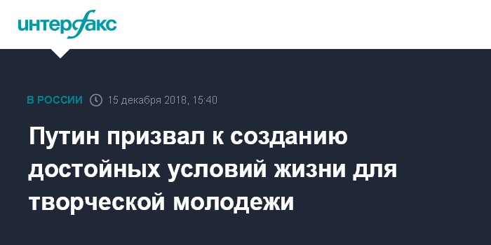 Путин призвал к созданию достойных условий жизни для творческой молодежи