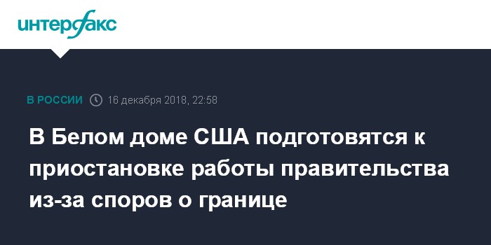 Москва. 16 декабря. INTERFAX.RU - Американский Белый дом и ряд федеральных ведомств начали заблаговременную подготовку к возможной приостановке работы правительства из-за отсутствия понимания между демократами и республиканцами по вопросу безопасности границы, пишет в воскресенье "Вашингтон пост".