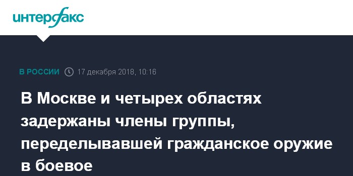 Москва. 17 декабря. INTERFAX.RU - ФСБ России сообщает о пресечении деятельности международной преступной группы, занимавшейся переделкой гражданского оружия в боевое в пяти регионах России.