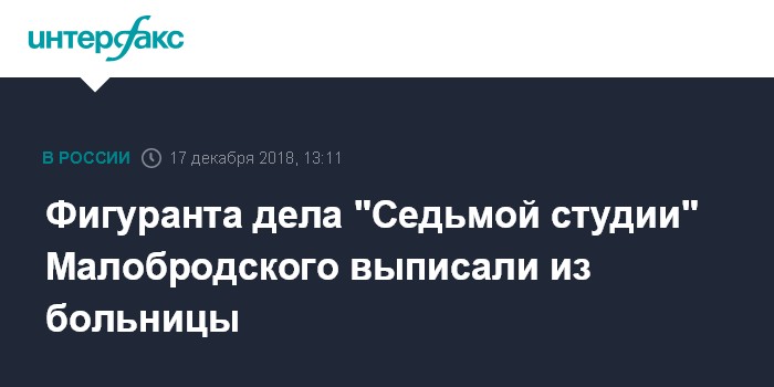 Москва. 17 декабря. INTERFAX.RU - Госпитализированного в начале декабря бывшего генпродюсера автономной некоммерческой организации "Седьмая студия" и экс-директора "Гоголь-центра" Алексея Малобродского выписали из больницы, подтвердили медики.