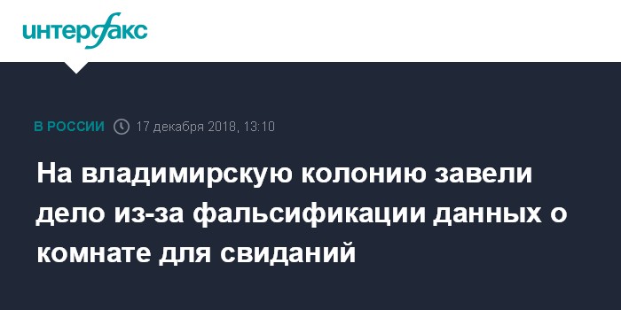 Москва. 17 декабря. INTERFAX.RU - Во Владимирской области завели уголовное дело на руководство колонии, которое пыталось обмануть суд, представив ему сведения о якобы оборудованной комнате для свиданий, которой в действительности в учреждении нет; об этом сообщает в понедельник пресс-служба управления СКР по региону.