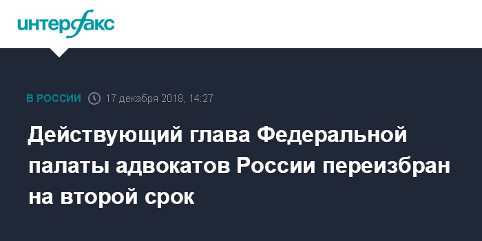 Действующий глава Федеральной палаты адвокатов России переизбран на второй срок