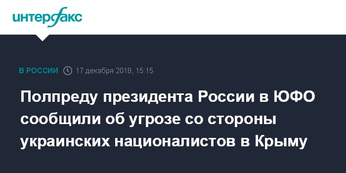 Полпреду президента России в ЮФО сообщили об угрозе со стороны украинских националистов в Крыму
