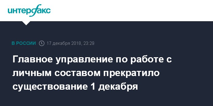 Главное управление по работе с личным составом прекратило существование 1 декабря