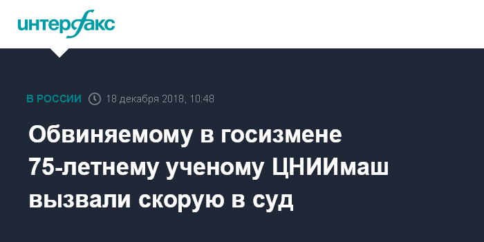 Обвиняемому в госизмене 75-летнему ученому ЦНИИмаш вызвали скорую в суд