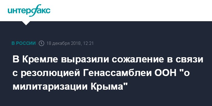 В Кремле выразили сожаление в связи с резолюцией Генассамблеи ООН "о милитаризации Крыма"