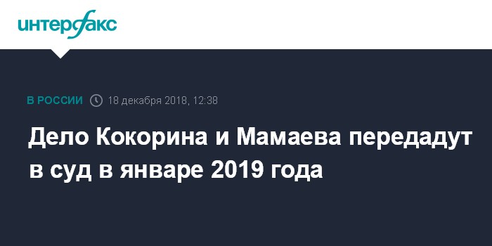 "Следствие будет завершено в ближайшее время. Дело будет направлено в Тверской суд (Москвы - ИФ) в январе 2019 года. Осталось выполнить некоторые процессуально-следственные действия", - сказал во вторник в суде следователь по делу.