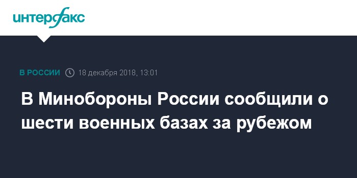 В Минобороны России сообщили о шести военных базах за рубежом