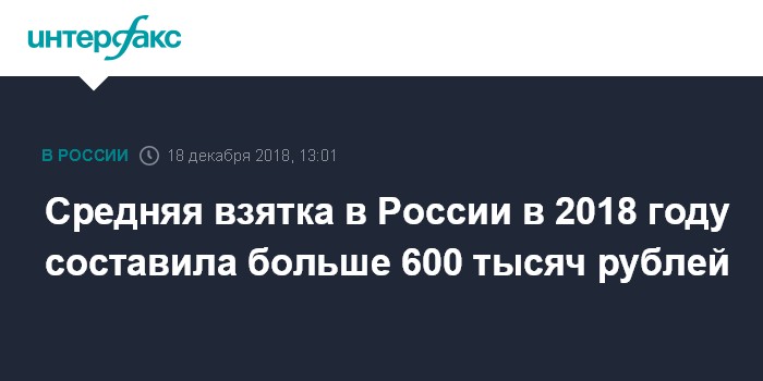 Средняя взятка в России в 2018 году составила больше 600 тысяч рублей