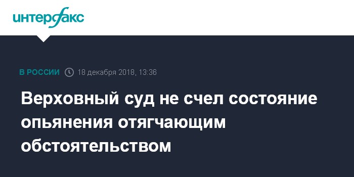 Верховный суд не счел состояние опьянения отягчающим обстоятельством