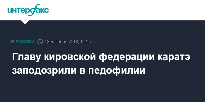 Москва. 18 декабря. INTERFAX.RU - Глава кировской федерации каратэ стал фигурантом дела о преступлении сексуального характера в отношении несовершеннолетнего.