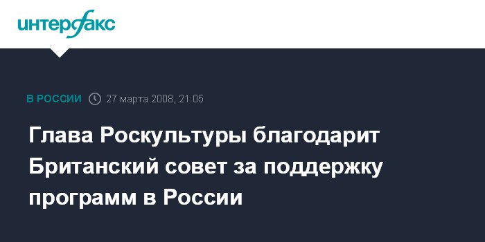 Москва. 27 марта. ИНТЕРФАКС - Руководитель Федерального агентства РФ по культуре и кинематографии Михаил Швыдкой отметил заслугу Британского совета в реализации ряда культурных программ в России.