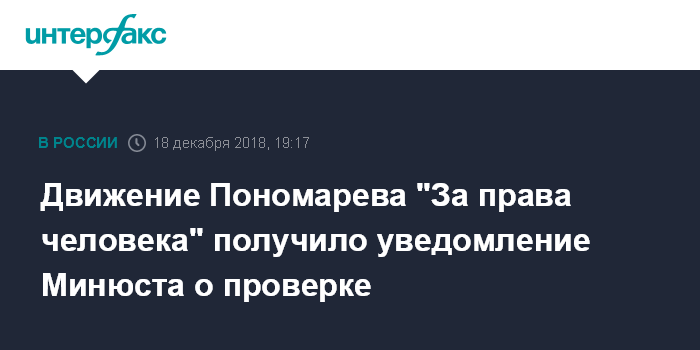 Движение Пономарева "За права человека" получило уведомление Минюста о проверке