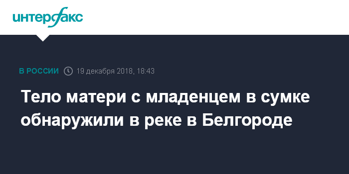 Москва. 19 декабря. INTERFAX.RU - Следователи проводят проверку по факту гибели матери и младенца, тела которых обнаружены в реке в Белгороде в среду, сообщает пресс-служба СУ СКР по Белгородской области.