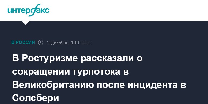 "У нас нет данных конкретно по Солсбери, но выездной поток в Великобританию по итогам трех кварталов 2018 года сократился на 11% по сравнению с аналогичным периодом прошлого года. Предполагаю, что на фоне антироссийской активности властей Соединенного Королевства наши граждане стали с осторожностью относиться к поездкам в Британию", - сообщил Сафонов, отвечая на вопрос издания, сделал ли скандал в Солсбери этот регион популярным.