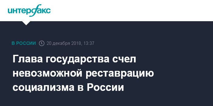 Москва. 20 декабря. INTERFAX.RU - Президент Владимир Путин не считает, что в России возможна реставрация социализма.