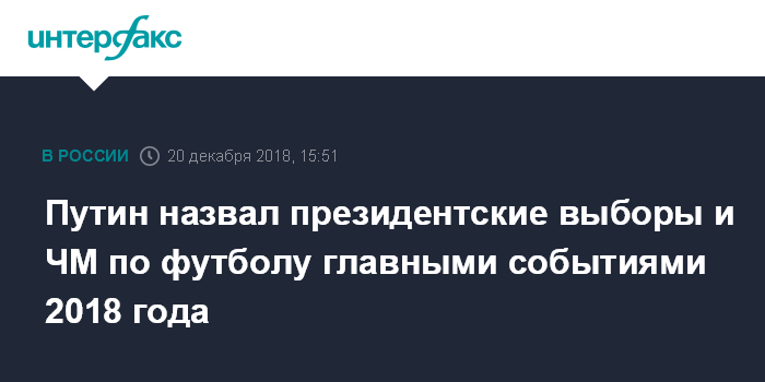 Путин назвал президентские выборы и ЧМ по футболу главными событиями 2018 года