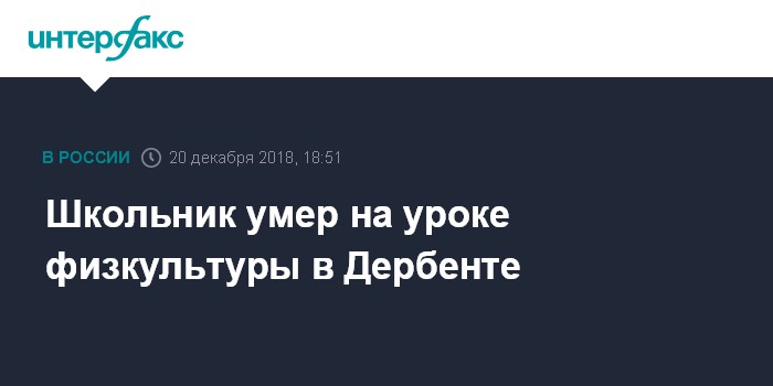 Москва. 20 декабря. INTERFAX.RU - Девятиклассник умер на уроке физкультуры в Дербенте, проводится проверка, сообщил агентству "Интерфакс" старший помощник руководителя СУ СКР по Дагестану Расул Темирбеков.