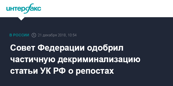 Совет Федерации одобрил частичную декриминализацию статьи УК РФ о репостах