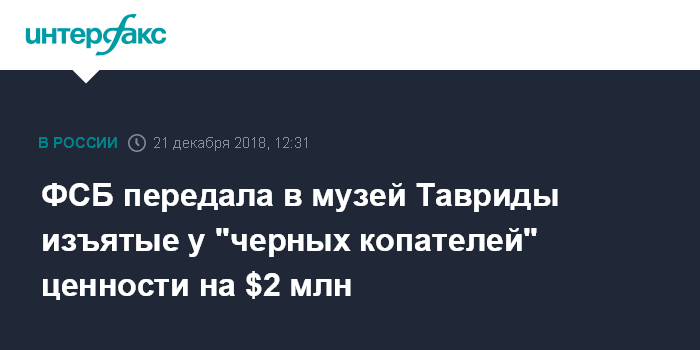 ФСБ передала в музей Тавриды изъятые у "черных копателей" ценности на $2 млн