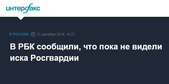 Москва. 21 декабря. INTERFAX.RU - В РБК пока не видели иска Росгвардии, который она собирается подавать к медиа, поэтому не может оценить его обоснованность, сообщил "Интерфаксу" пресс-секретарь холдинга Егор Тимофеев.
