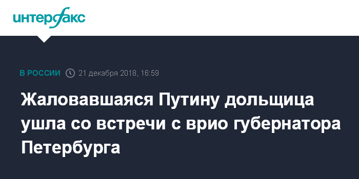 Вице-губернатор Петербурга отказался работать с задавшей вопрос Путину дольщицейЧитать подробнееПосле приветственного слова Беглов предложил высказаться Андреевой, однако она отказалась участвовать во встрече.