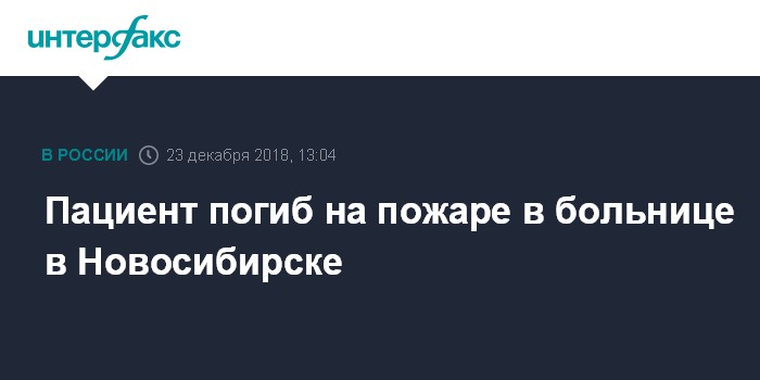 Москва. 23 декабря. INTERFAX.RU - В городской больнице в Октябрьском районе Новосибирска ликвидировали пожар, в результате которого погиб пациент.