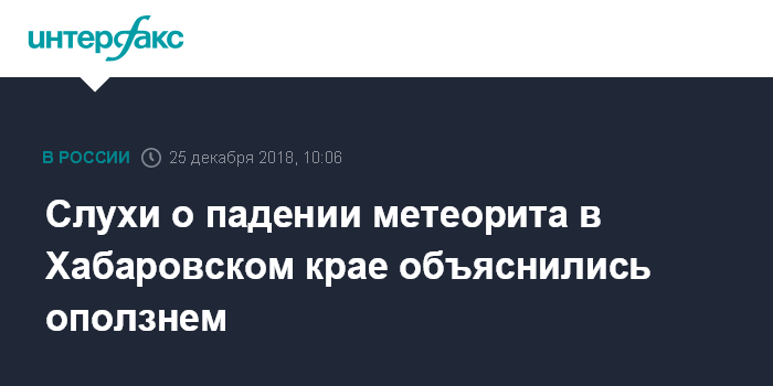 Слухи о падении метеорита в Хабаровском крае объяснились оползнем