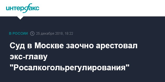 Суд в Москве заочно арестовал экс-главу "Росалкогольрегулирования"