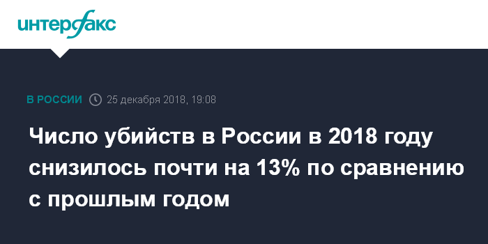 Число убийств в России в 2018 году снизилось почти на 13% по сравнению с прошлым годом