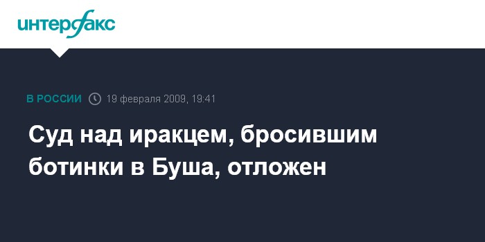 Лондон. 19 февраля. INTERFAX.RU - Рассмотрение судом дела иракского журналиста Мунтазира аз-Заиди, бросившего туфли в бывшего президента США Джорджа Буша во время его визита в Багдад, отложено до 12 марта, сообщает BBC.