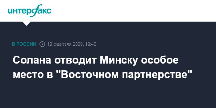 Минск. 19 февраля. INTERFAX.RU - Верховный представитель по вопросам общей внешней политики и политики безопасности ЕС Хавьер Солана считает, что Белоруссия должна занимать особое место в инициативе "Восточное партнерство".