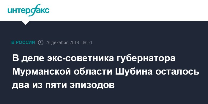 В деле экс-советника губернатора Мурманской области Шубина осталось два из пяти эпизодов