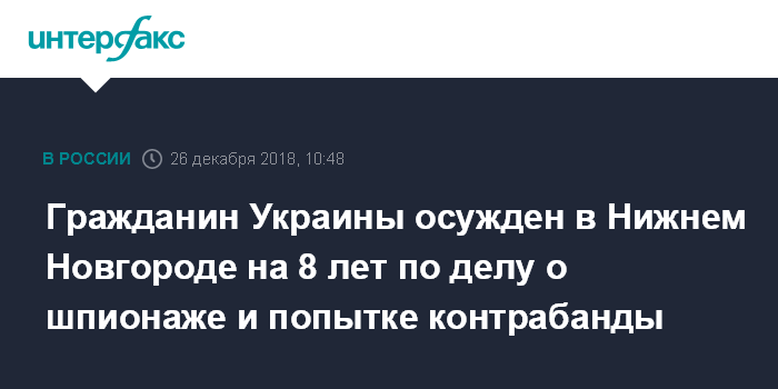 Гражданин Украины осужден в Нижнем Новгороде на 8 лет по делу о шпионаже и попытке контрабанды