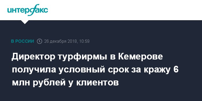 Директор турфирмы в Кемерове получила условный срок за кражу 6 млн рублей у клиентов