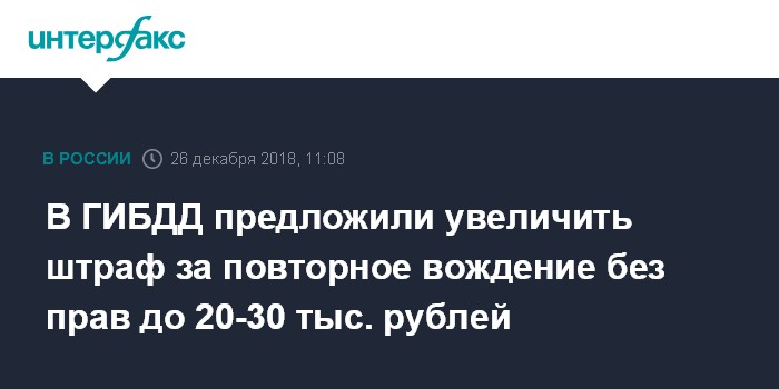 Москва. 26 декабря. INTERFAX.RU - Штраф за повторное вождение без водительского удостоверения может увеличиться до 30 тысяч рублей, сообщил начальник ГИБДД РФ Михаил Черников.