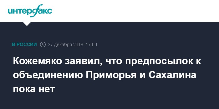 Ранее в декабре Кожемяко, победивший на выборах главы региона, заявил, что вопрос объединения Приморского края и Сахалинской области должен решаться путем референдума.