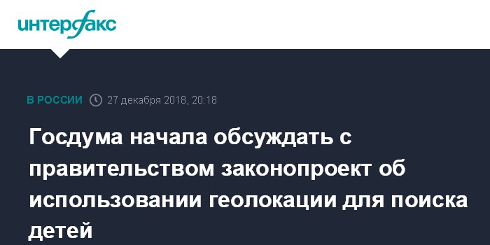 Законопроект об использовании геолокации для розыска пропавших детей выносился на несколько последних заседаний палаты в осеннюю сессию, однако не рассматривался парламентариями. Он предусматривает возможность оперативного поиска пропавших детей путем определения их возможного местонахождения с использованием геолокационных данных. Для такого поиска будет требоваться письменное согласие одного из родителей, мотивированное постановление одного из руководителей органа, ведущего оперативно-розыскную деятельность, а также обязательное уведомление суда (судьи) в течение 24 часов. В течение двух суток после начала поисков необходимо будет также получить судебное решение. Если судебное решение не было получено, то оперативно-розыскные мероприятия, в соответствии с законопроектом, должны быть остановлены.