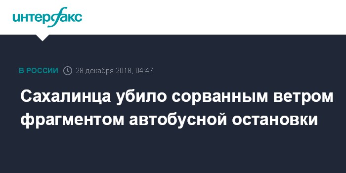 Москва. 28 декабря. INTERFAX.RU - Жителя Поронайска убило фрагментом автобусной остановки, которую разорвало сильным ветром во время метели утром в пятницу, сообщили агентству "Интерфакс" в Поронайском ОМВД.