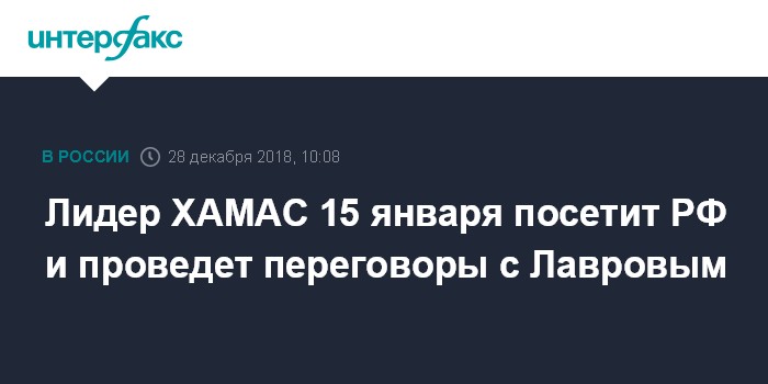 Лидер ХАМАС 15 января посетит РФ и проведет переговоры с Лавровым