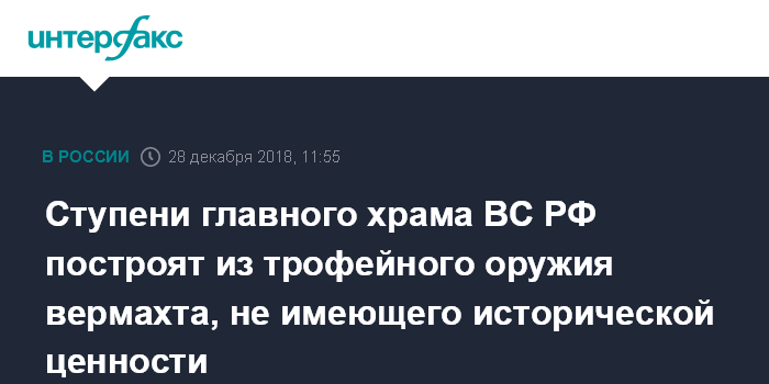 Ступени главного храма ВС РФ построят из трофейного оружия вермахта, не имеющего исторической ценности