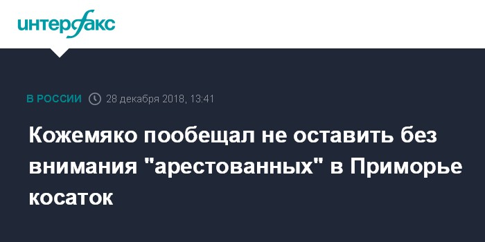 Москва. 28 декабря. INTERFAX.RU - Приморские власти будут готовы подключиться к решению о дальнейшей судьбе белух и косаток, содержащихся в вольерах в бухте Средняя под Находкой, сообщил губернатор Приморского края Олег Кожемяко.
