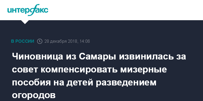 Чиновница из Самары извинилась за совет компенсировать мизерные пособия на детей разведением огородов